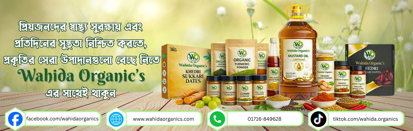 Wahida Organic's অনলাইন শপে আপনাকে স্বাগতম || অনলাইনে আস্থা ও বিশ্বস্ততার সাথে সারা বাংলাদেশে হোম ডেলিভারী দিয়ে থাকি অর্ডার করতে অগ্রিম টাকা দিতে হবে না এ্যাডভান্স বিকাশ পেমেন্টে ৫% ডিসকাউন্ট ৩-৫ দিনে সারাদেশে হোম ডেলিভারী দেওয়া হয় ক্যাশঅন ডেলিভারীর সুবিধা রয়েছে, তাই অর্ডার করুন নিশ্চিন্তে ধন্যবাদ |